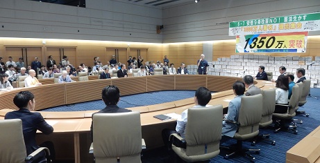 今回提出された第一次分の署名の総数は約1350万筆。目標の3000万筆の達成に向けて、さらに取り組みを重ねることを確認しました。署名は各議員を通じて国会に提出されます。