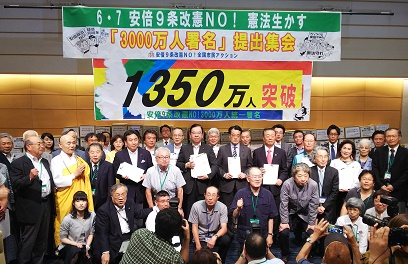 安倍9条改憲NO!1350万筆の第一次署名を提出