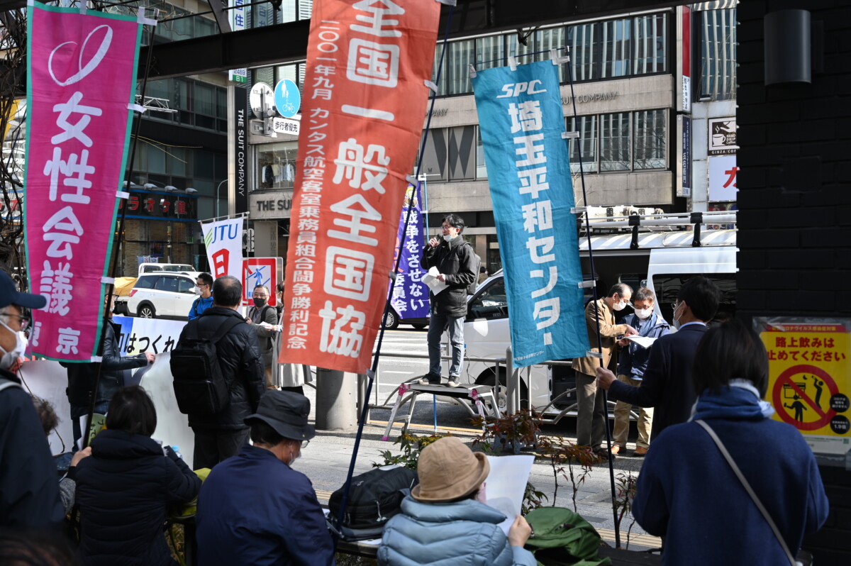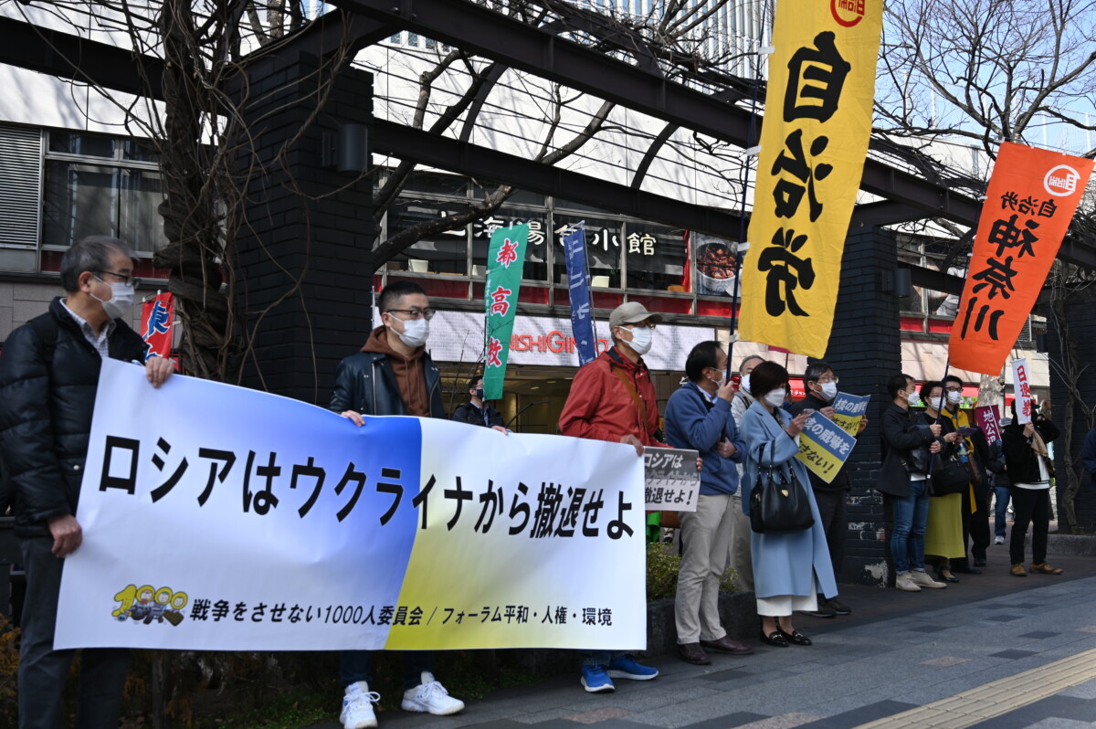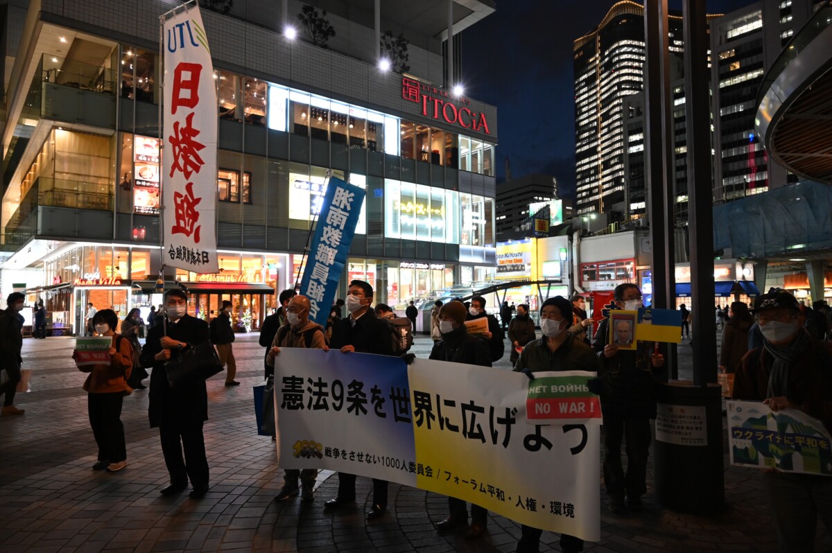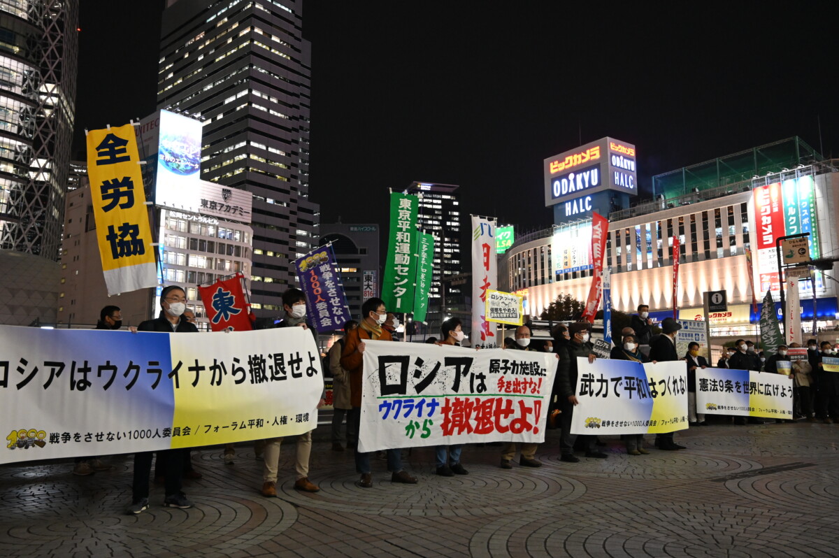 ウクライナ侵攻から1週間となる3月3日、戦争をさせない1000人委員会と平和フォーラムは、ウクライナ侵攻に抗議する街宣行動を東京・有楽町駅イトシア前で行いました。