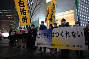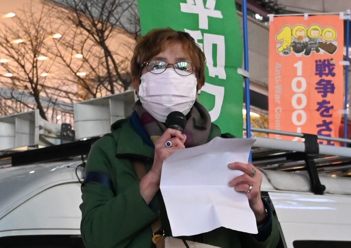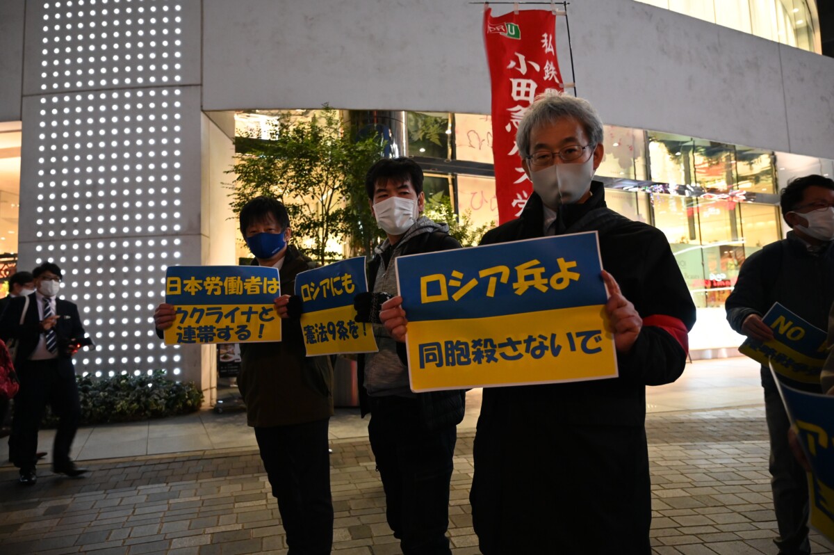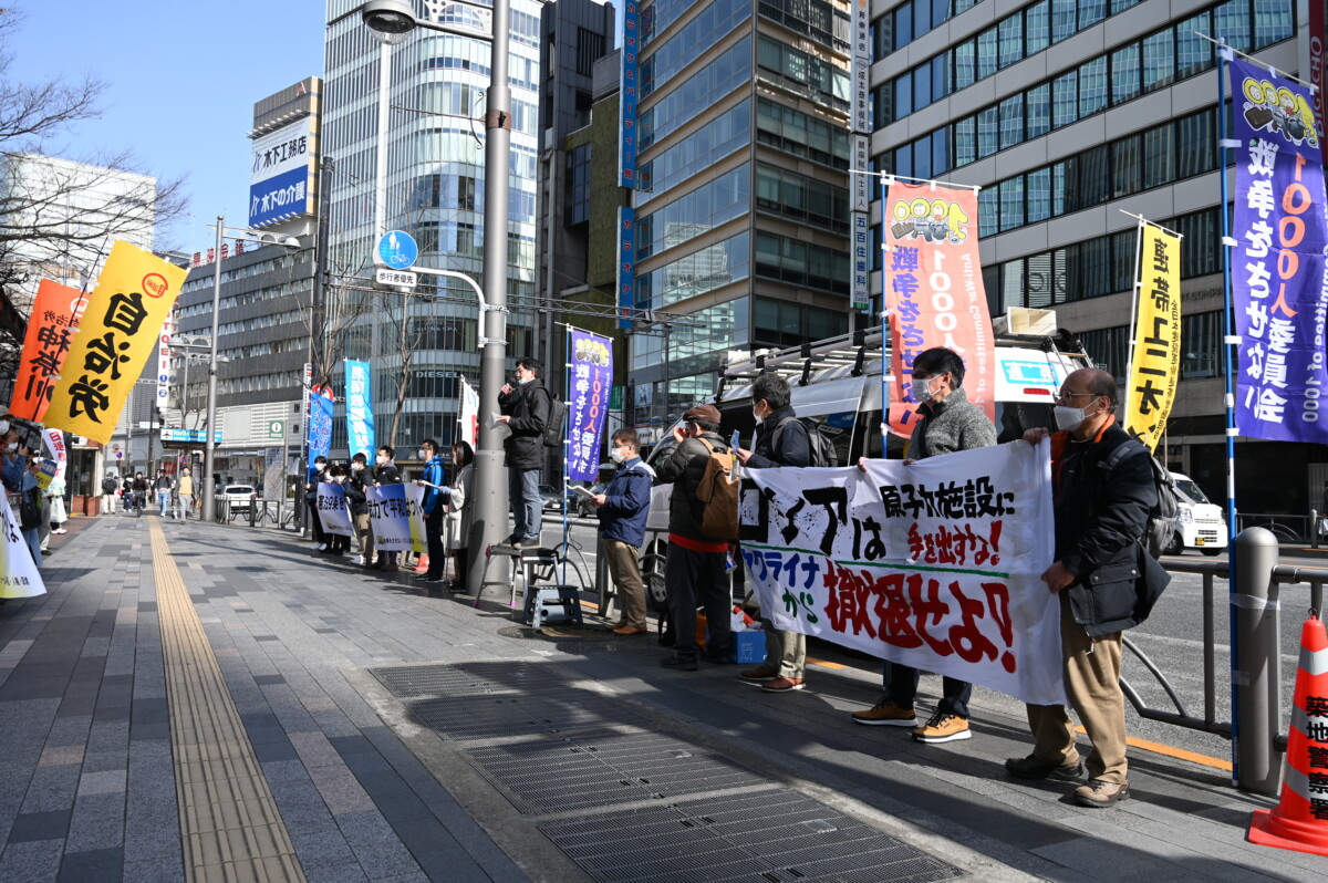ウクライナ侵攻から1週間となる3月3日、戦争をさせない1000人委員会と平和フォーラムは、ウクライナ侵攻に抗議する街宣行動を東京・有楽町駅イトシア前で行いました。