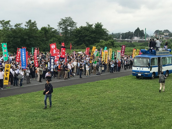 集会の最後に「オスプレイの横田基地配備に反対する6・17東京集会決議」が読み上げられ、満場の拍手で確認されました。その後参加者は、横田基地に向かうデモに出発し、「オスプレイ来るな!横田に来るな!」と訴えました。