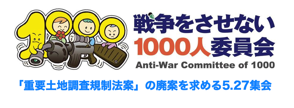 平和フォーラムが参加する「戦争をさせない1000人委員会」は5月27日、「重要土地調査規制法案」の廃案を求める集会を開催しますので、下記の通りご案内いたします。