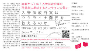 「廃案から1年:入管法政府案の再提出に反対するオンラインの集い —入管法政府案はウクライナ難民を救えるのか」のご紹介