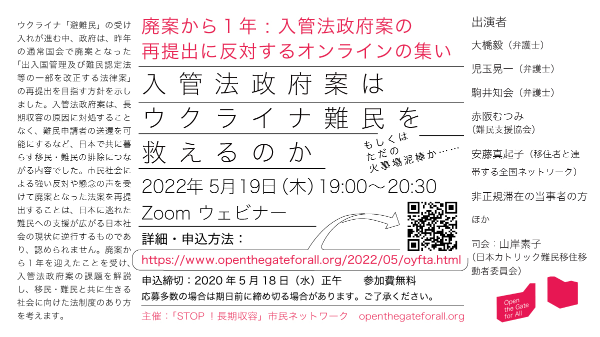 廃案から1年:入管法政府案の再提出に反対するオンラインの集い—入管法政府案はウクライナ難民を救えるのか