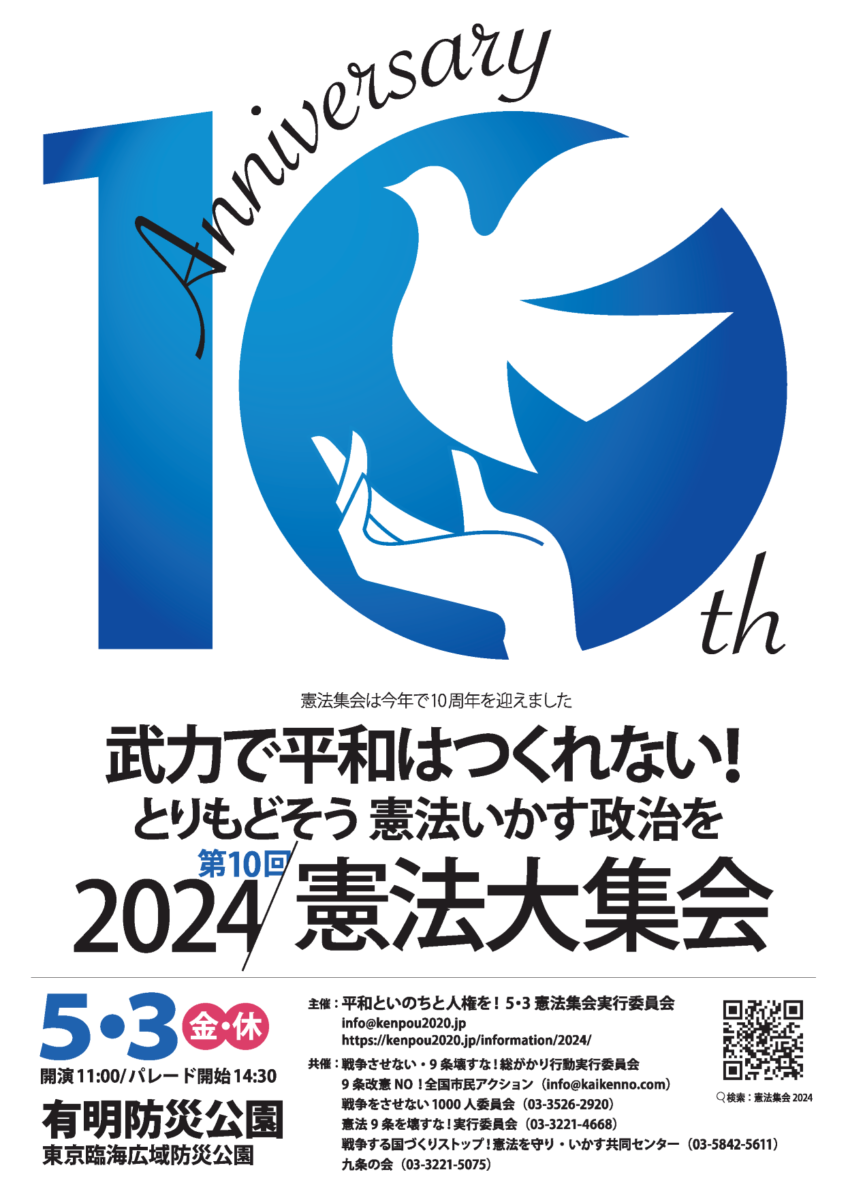 「武力で平和はつくれない!とりもどそう憲法いかす政治を 2024 憲法大集会」開催のご案内