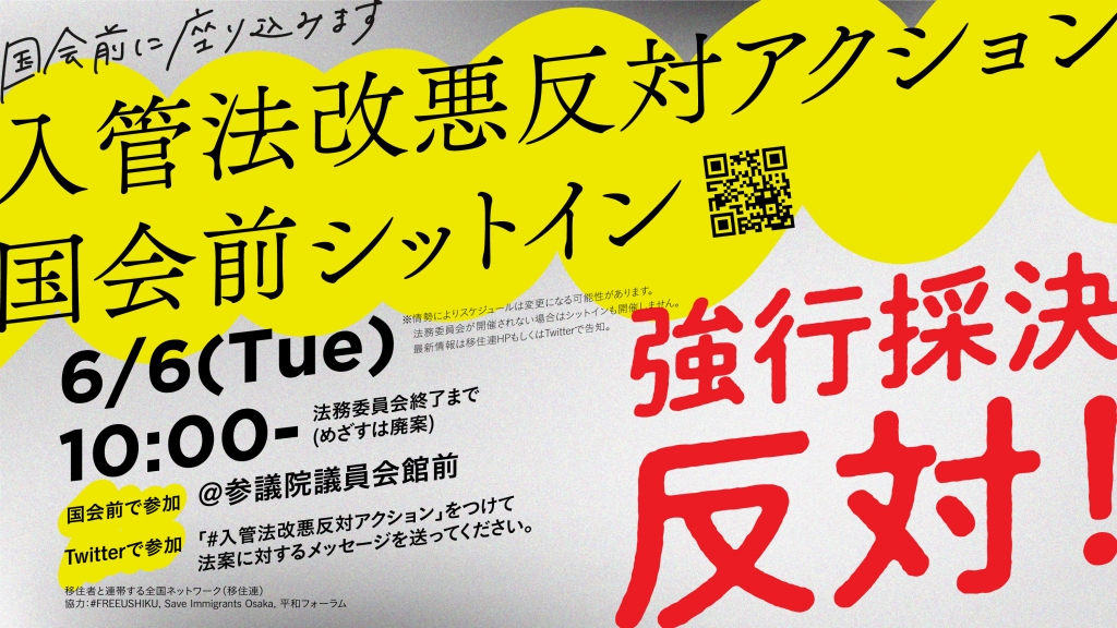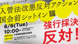 移住者と連帯する全国ネットワーク(移住連)が4月14日以降、入管法改悪反対のシットイン(座り込み)連続行動を呼びかけています。平和フォーラムとしても参加・協力していきます。廃案に向け、多くの参加をお願いします。