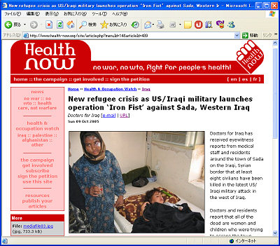 ![]() イラク情勢Watch vol.14 05年10月15日 発行:フォーラム平和・人権・環境 編集:志葉 玲 毎週更新(予定) Topics 1)週間イラク報道Pick up 2)国民投票どころではない?イラク西部での軍事作戦 3)アンバル州での投票率は低くなる〜独立系メディアが伝える現地の声〜 4)元イラク暫定政権閣僚ら、10億ドル横領で訴えられる 5)夜間外出禁止令に悩まされる妊婦と助産婦 1)週間イラク報道Pick up 【05.10.15】米財政赤字は3186億ドル 05年度、23%減少(共同) 【05.10.14】イラク新憲法案修正、あす国民投票 承認の公算高まる(産経) 【05.10.14】米大統領は「失敗者」41% 「成功者」を初逆転 人気低下深刻に(西日本) 【05.10.13】米大統領、前線兵士と対話 リハーサル映像が裏目に(共同) 【05.10.13】3割が英軍の即時撤退望む=「イラク攻撃は誤り」57%に−世論調査(時事) 【05.10.13】サマワで豪部隊に初の銃撃 負傷者なし(共同) 【05.10.13】「イラクに兵送るな」 独首相が「お別れ」演説(共同) 2)国民投票どころではない?イラク西部での軍事作戦 イラクでは今月15日新憲法の国民投票が行われるが、西部のアンバル州では、「選挙実施のためのテロリスト掃討」を名目に、10月に入ってから3つもの米軍・イラク国家防衛隊の大規模軍事作戦が行われ、投票直前まで継続される模様だ。アンバル州では、今年1月末の国民議会選挙でも、投票直前まで米軍による軍事作戦が行われ、投票率はわずか2%だった。 ![]() 「ドクターズ・フォー・イラク」の声明を掲載するHealth Now アンバル州は、イラクの西部の州で、人口は120万人程。ヨルダンやシリア、サウジアラビアと国境を接し、イスラム・スンニ派が多数を占める。ファルージャやラマディなどがそうであるように、米軍への抵抗が激しいことで知られており、最近はシリア国境に接する街カイムに外国人武装勢力が潜伏している、と米軍は主張している。 10月に入り米軍とイラク国家防衛隊は、"Mountaineers"、"Iron Fist"、"River Gate"と立て続けにアンバル州での軍事作戦を展開。今月10日付けの『ネイビータイムズ』に掲載されたキャンプ・ファルージャのジョンソン少佐の話によれば、米軍による軍事作戦は終了したとされているが、1万5000人投入されたイラク国家防衛隊の兵士達は作戦を継続するという。また同日の多国籍軍のプレスリリースでは、"River Gate"作戦は継続中だとされている。 軍事作戦による現地住民の被害状況は明らかになっていないが、現地医療関係者によるNGO「ドクターズ・フォー・イラク」の9日付けの声明によると、"Iron Fist"作戦によりカイムから2500家族の住民が近郊のサダに避難、緊急の人道・医療支援を必要としているという。 新憲法案をめぐっては、連邦制を主張するシーア派やクルド人と、反対するスンニ派や他の少数民族が対立。スンニ派の多いアンバル州やニナワ州では、新憲法案への反対票が伸びることが予想されている。 3)アンバル州での投票率は低くなる〜独立系メディアが伝える現地の声 独立系ニュースサイトのIWPR(インシュテュート・フォー・ウォー・アンド・ピース・レポーティング)は、5日付けの記事の中で、武装勢力の妨害や米軍等の掃討作戦のためにアンバル州での投票率は低くなるだろう、との地元の声を紹介した。 記事によると、アンバル州の州都ラマディでは、武装勢力は国民投票に行くなと警告するチラシを配っているのだという。一般住民も、この間の政治プロセスにウンザリしており、街には「国民投票にNO」と書かれた横断幕があちこちに張られている。 この間、ラマディ周辺では大規模な軍事作戦が行われ、多くの人々が投票のための有権者登録が出来なかった。住民の話によると、米軍は軍事作戦の間ラマディを封鎖、40万人の人々が家に留まることを強いられたという。 ラマディの学生であるサミル・アルドライミさんはIWPRの記者に対し、「私はラマディで有権者登録をした人がいるとは思いません。私も投票しないし、学友達もそうです。殺されたり、逮捕されたりする危険が常にあるのです」と語った。 4)元イラク暫定政権閣僚ら、10億ドル横領で訴えられる 11日、イラク当局はハジム前国防大臣を含む23人を、10億ドル以上を横領した疑いで逮捕状を出した。ロンドンに拠点を置く中東系ニュースサイト「ミドル・イースト・オンライン」が報じた。 先月、アリ・アラウィ財務大臣は、アラウィ前首相下の暫定政権時、「防衛予算から10億ドルが横領された」と英紙インディペンデントに語っていた。粗悪で時代遅れの装備品が購入され、残りの莫大の資金が海外に流出したとされている。 23人への逮捕状を出した「イラク社会公正委員会」ラジ・ハムザ・アル=ラジ裁判長は「他の省庁の元トップも汚職に関わっている」と発言したが個人名を挙げることは避けた。 アラウィ財務大臣も「複数の省庁から5〜6億ドルの公金が消えた」と発言した。 ラジ裁判長は「国際刑事警察機構の協力も得ている」と発言。国外の関係者も追及していく構えだ。 5)夜間