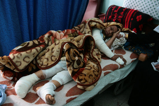 ![]() イラク情勢Watch vol.71 09年1月31 日 発行:フォーラム平和・人権・環境 編集:志葉 玲 現地写真リポート・パレスチナ自治区ガザ ![]() 普段はイラク情勢についての情報の掲載している当コーナーだが、パレスチナ情勢への市民の関心の高さに加え、現在、編集者がガザ地区に取材に入っているため、今回は特別にガザの写真リポートとさせていただく。 当コーナー編集者はエジプト北東部ラファの国境からガザ入りした。イスラエル側から入ることも可能だが、制限が厳しく、遠回りになるがエジプト・カイロから陸路で国境まで行き、ラファ検問所から入る方が容易だと見たからである。ただ、ラファ検問所でもスムーズにガザ入りできるわけではなく、大使館からの手紙を持っているにも関わらず、門前払いされる人道支援関係者も少なくなかった。検問所の裁量は良くも悪くもいい加減で、一度ガザ入りを拒否されても次の日に許可されることもある。 ![]() ガザ地区とエジプトの境界に集まる人道支援関係者 民間人に多くの犠牲者―女性や子どもも ![]() イスラエル軍による攻撃の死者は、昨年12月27日から、1月19日の間で、約1,314人。うち412人が子ども、110人が成人女性で、負傷者5,300人、うち1,855人が子ども、795人が成人女性だという(NGO・パレスチナ子どものキャンペーン調べ)。 編集者も、ガザ市中心のシファ病院を訪れたが、空爆の被害者の証言からは、一般住宅や国連関係の施設に対しても、情け容赦のない猛攻撃が行われたことが伺いしれた。犠牲者の中には、白旗を掲げ、イスラエル軍も相手が丸腰であることを視認しているのにも関わらず攻撃された例や、負傷した身内を病院に連れて行こうとして攻撃された例なども少なくない。医療関係者も攻撃を受けるなど、イスラエル軍の行動は、ジュネーブ条約に反するものとして、強く批難されるべきものである。 ![]() ![]() ![]() 写真の女性は空爆で左足を失った。 大量に使用された非人道兵器白リン弾 今回のイスラエル軍の攻撃で特筆するべきは、非人道兵器として、その使用が批難される白リン弾が大量に使用された疑いが濃厚なことだ。白リン弾については、当コーナーでも以前扱ったことがあるが、リン(燐)の化学反応を使った兵器で、一種の焼夷弾だといえる。 ![]() シファ病院の敷地内に設けられた戦争被害展。白リン弾の残骸が展示されている。 白リン弾の悪質さは、リンの破片が、少しでも体に触れようものなら、そこから皮膚を焼き骨にまで達する大やけどを負うことだろう。シファ病院の医師はこう証言する。「最初、小さな傷だったので処置をして、患者を帰したら、数時間後、戻ってきた患者の患部は大きく焼けただれ、患者は死にかけていた。患部にめり込んだ白リン弾の破片が患者の体を焼き続けていたのだ」。 ![]() 白リン弾の被害者の一人 各地の住民の証言からは、白リン弾が一般住宅に対しても積極的に使われたことが伺える。最もショッキングな事例としては、国連が運営する学校に避難した人々に対し使用されたことだ。そこが国連の施設であることも、そこにいる人々も避難民であるにもかかわらず、白リン弾を使用したことは、許しがたい行為である。 ![]() 国連の援助物資も白リン弾で焼かれた。 ![]() あちこちに白リン弾の破片は落ちていて、摩擦や衝撃を加えると再び発火する。 破壊された住宅、行き場を失う人々 ![]() 今回の攻撃で深刻なのは、住宅の破壊だ。前出のパレスチナ子どものキャンペーンによれば、全壊4,000棟、半壊17,000棟。また国連(UNRWA)の調査によれば、約3万5000人が避難生活を送っているという。だが、主な避難場所となっている学校等の施設の運営が再開されるため、避難民は移動を余儀なくされている。また、避難場所の不足から、家族がバラバラに避難生活を送らざるを得ないケースも少なくない。 ![]() スポーツセンターで避難生活中の子ども達 一方、半壊のケースでは、住民がその場に留まっていることも多いが、水道や電気などの設備が破壊され、壁や屋根にも大きな穴が開いているため、夜間の寒さに住民達は凍えている。ドアやタンス、テーブルなど壊れた木製の家具を薪にして、辛うじてしのいでいるという状況だ。 ![]() 破壊された家を指差す少女。 また、物理的な被害だけでなく、精神的な被害も深刻である。不眠や食欲減退、無気力化など、メンタルな問題を訴える避難民も多い。編集者の取材でも、ある母親は彼女の3歳の娘が「もう6日間もろくに食べず、ぐったりと寝てばかりいる」と心配していた。食料や水、仮設住宅などの支援は勿論、カウンセラーの派遣など、精神面での支援の必要性を強く感じた。 ![]() 家畜も殺された。 停戦は守られるのか? 今月19日に停戦が発効したものの、その後も散発的な戦闘や空爆・砲撃などが続いている。日本のメディアでは「現地武装勢力が先に攻撃し、イスラエル軍が報復する」という報道がパターン化しているが、海岸近くでは連日のよ