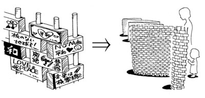 内容: 「核廃絶の壁」は、ドイツの若者たちによる平和NGO「国際法運動」が、紛争の平和的解決や国際法の遵守などを求めてはじめた運動。平和市長会議が提唱する「核兵器廃絶のための緊急行動2020ビジョン」でも支持され、2005年5月のNPT(核不拡散条約)再検討会議から8・9ナガサキへと引き継がれ、2005年8月9日、原爆投下の日に約8万5千個の木製ブロックをつなぎあわせ、爆心地公園(原爆中心碑周辺)に反核・平和を願うメッセージをつくりあげました。 これをスタートに、毎年、全国から1万個を超える木のブロックが寄せられ、8月7日から9日にかけて積み上げられています。今年も原水禁国民会議を中心に実行委員会が発足し継続したキャンペーンとして呼びかけられています。