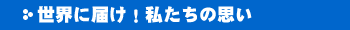 | まずは北海道のHさん「戦後50年目の8月6日に私は生まれました。とても複雑な気持ちです。その時の子どもたちはどんな気持ちで逃げたのでしょうか。そのことを思うと胸が苦しいです。私たちがしなければいけないことは、戦争のない平和な世界をつくることだと思います」。 |