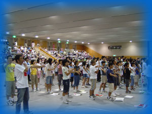 首都圏スタッフは5月から、広島スタッフは6月から活発な意見交換を経て、8月5日を迎えることができました。そして当日、海外、全国から広島を訪れ、資料館などで原爆の被害について見学を終えた子どもたち約500人が参加しました。 |