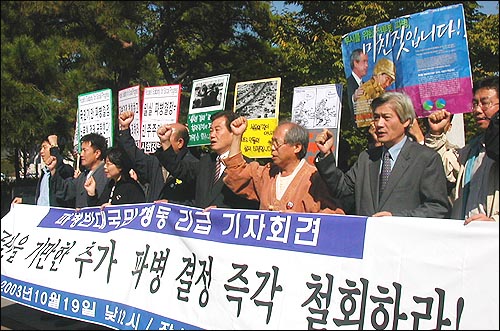 18日、大統領府が「イラク派兵決定」の立場を公式に発表すると、市民団体等の「派兵決定の撤回」の声が連日強まっている。