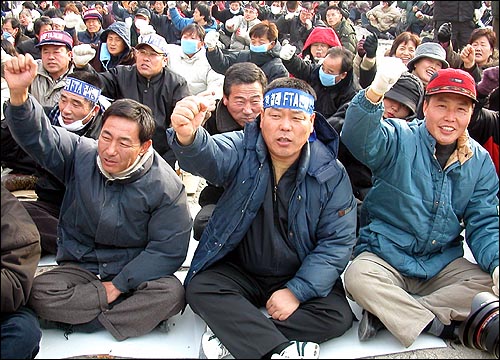 農民集会、韓−チリFTA批准案想定の直前、国会への進撃準備と...安堵の一息