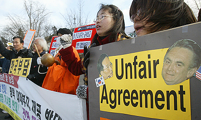 | △14日午後、ソウル龍山区国防部前で 市民団体らが龍山米軍基地移転費用の韓国負担を反対するデモを行なっている。 |