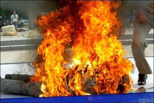 7日、タクシー制度改善決議大会の時、ジョンオ交通のチョウ・キョンシキ氏が焼身抗議、危篤状態。 |