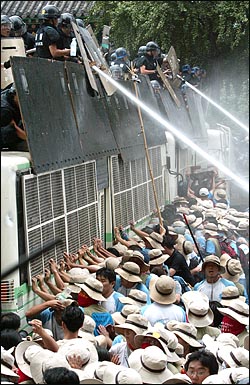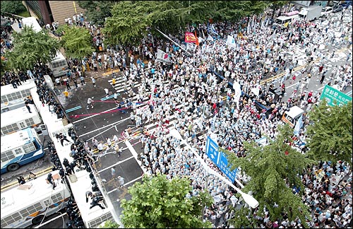 大会が終わった後、参加者らが駐韓米大使館へ行進しようとしたが警察はこれを阻止し、激しい衝突となった。