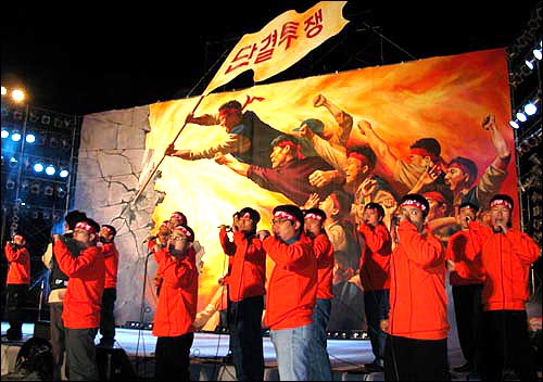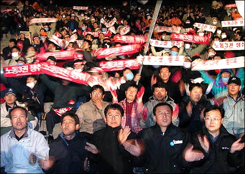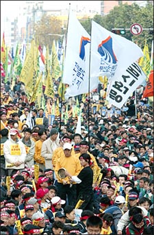 李委員長はまた、「来る21日には韓国労総も 7万名の組合員がソウルに集まり、全国労働者大会を開くこと」とし、「韓国労総組合員等も傲慢な盧武鉉政権に対抗し、闘争すること」を伝えた。