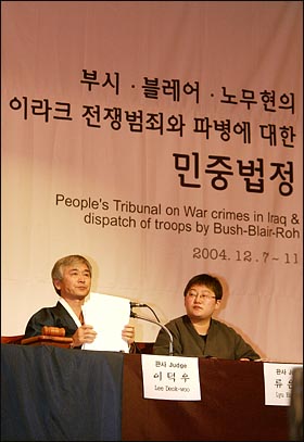 「ブッシュ・ブレア・盧武鉉のイラク 戦争犯罪と派兵に対する民衆法廷」で 李トクウ・首席判事は被告人らに対して有罪を宣告した。