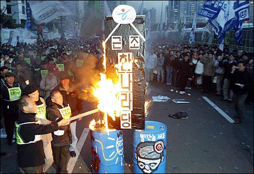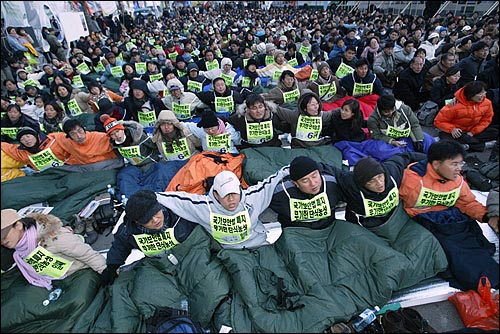 朴ソクウン・国民連帯執行委員場は「来る14日から毎晩7時に光化門でキャンドル集会を開いて、18日午後には同じ 場所で10万余名が参加する『汎国民キャンドル大行進』を開催するなどより一層強力な闘争を繰り広げる」と今後