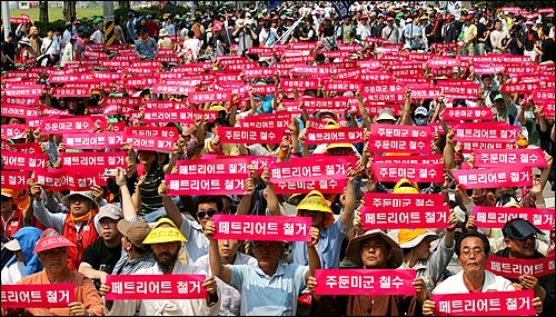 彼らは「パトリオット撤去、駐韓米軍 撤退」などのスローガンが書かれたピケを持って、「民衆の血で建設した光州が米国の先制攻撃のための戦略基地になっている」としながら、朝鮮半島内、米軍の戦力増加の一環として追加
