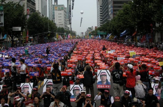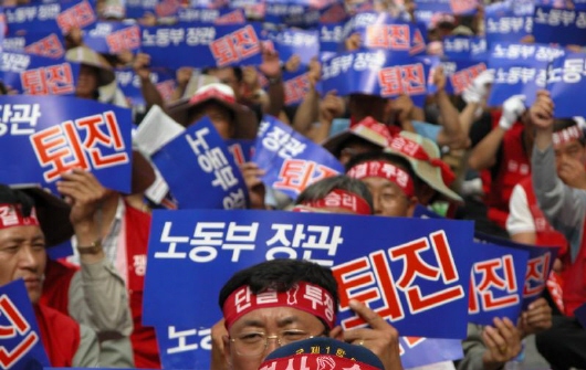 韓国労総が97年労動法改悪阻止闘争以後、9年ぶりにゼネストに突入した7日、光化門では韓国労総が主催した全国労働者大会が開かれた。
