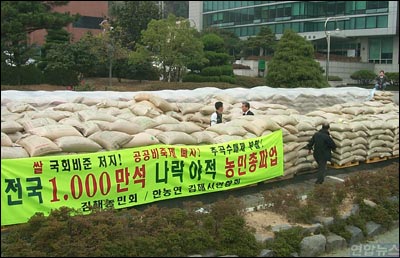 28日、全国農民会総連盟(全農)は政府のコメ交渉国会批准同意案の通商外交部通商委での強行通過を糾弾して、コメ値段の暴落に抗議して全国農民ゼネストを繰り広げた。