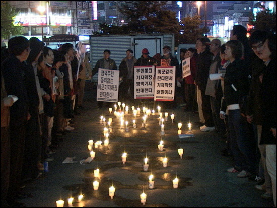 強制土地重受け入れ撤回、米軍基地拡張阻止」徹夜座り込み二日目。 平澤駅前の座り込みは2次平和大行進が開かれる来る12月11日まで続く予定だ。