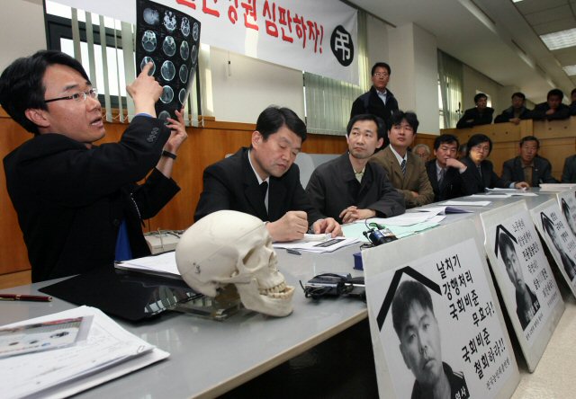 民主労働党は「昨日、全ヨンチョル農民殺害糾弾汎国民対策委員会は、記者会見を通し、全ヨンチョル氏が警察の 鎮圧後、倒れて他の農民らにより移される写真を提示した。昨日提示された