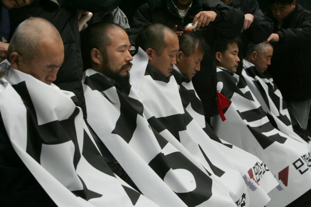 民主労総、非常対策委員ら削髪式を持って闘争方針発表