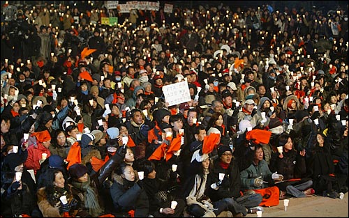 チェミンシキ(映画『オールドボーイ』)、アンソンキ(映画『シルミド』)、キムヘス(ドラマ『愛の群像』)、イビョンホン(ドラマ『美しき日々』)など韓国映画とドラマを代表するスターらが、全国農民会総連盟の農民らと共に、スクリーンクォーター縮小と韓米FTA交渉に反対するキャンドル集会を開いたのである。