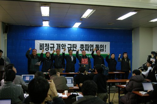 27日、国会環境労働委員会で非正規関連法案が強行通過された中、28日、民主労総は記者会見を行って「28日、13時から全面ゼネストを展開する」と宣言した。