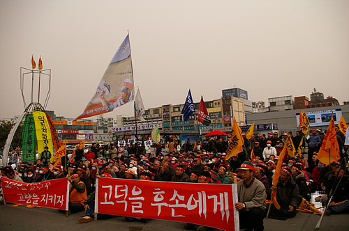 平澤駅は米軍基地拡張に反対する平沢市民の叫び声で一杯になった。
