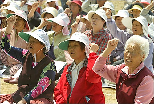外部から集まった市民団体会員、労働者、学生達は、村の進入に失敗して、大推里を目の前に置いて、入口で集会 をしめくくった。国防部の米軍基地拡張移転の予定地に設置した鉄條網の近くにはいけなかった。大推里の住民たちも、村の外側へ出ようとしたが、出れなかった。