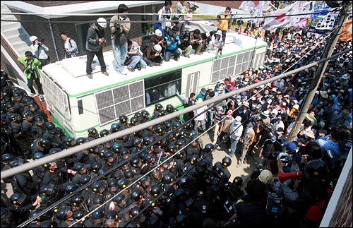 この日、兵力1万8千名を動員した警察は大推里に入っていくあらゆる道を徹底的に統制した。