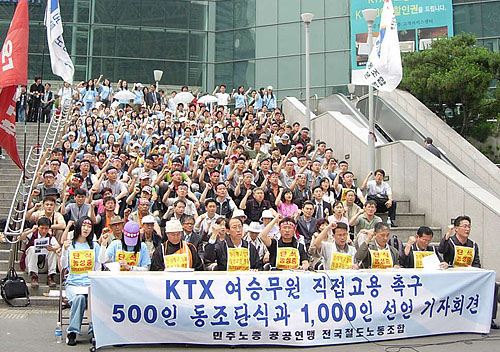 鉄道労組とKTX支部は、この日午前ソウル駅広場で記者会見を行って、同調断食突入を宣布し、KTX乗務員等の闘争を支持する「1000人宣言文」を朗読した。