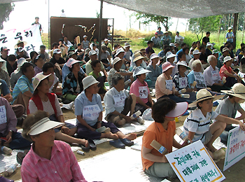 19日、2時 30分からデチュウ里で、第3次平沢米軍基地拡張阻止汎国民大会が開かれた。 汎国民大会は警察の封鎖のなか、住民と社会団体会員など150余人が参加した。