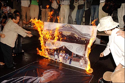 アジア平和と歴史教育連帯・ヤンミガン運営委員長は「周辺国の反対にも小泉が神社参拜を強行したことは、侵略に対して全然反省しないことを意味する」と、「私たちの願うことは反日ではなく平和であり、果して北東アジアの平和のために何をしなければならないのか冷情に察しなければならない」と言った。