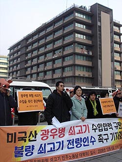 問題は去る1月韓米両国政府が合意した「米国産牛肉輸入衛生条件」は、狂牛病危険を遮断することができないくらい非常に不足な条件だったということだ。それにもかかわらず、アメリカ輸出企業等はこの輸入条件を守ることができずに、3回連続違反している状況だ。
