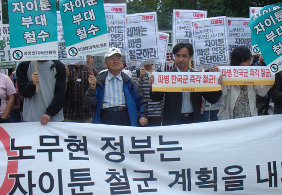 派兵反対国民行動は、28日国防省の前で記者会見を持って「'イラクに派兵されたザイトン部隊の撤兵計画案を出す」と言う政府の「約束移行」を促した。