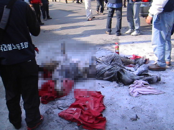 焚身したジョンヘジン組合員は漢江誠心病院に後送され、ヨンジン電業社の前では未だに建設労組組合員たちが警察と対置している。