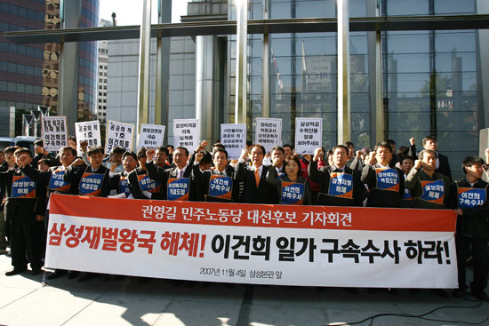 第214号 2007年11月05日 クォン・ヨンギル民主労働党候補,「サムソン李ゴンヒ王国に戦争宣布」