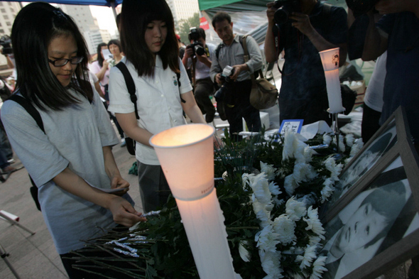 ソウルキャンドル集会は 2002年米軍装甲車に敷かれて死んだヒョスン・ミソンさんの