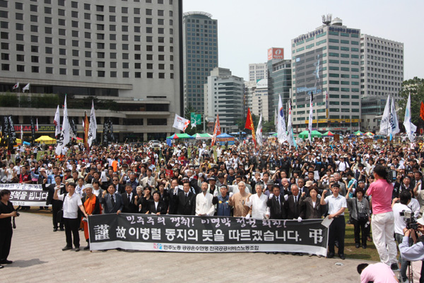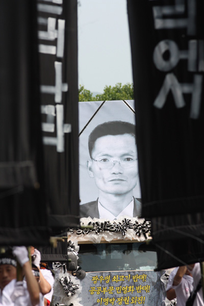14日、「米牛肉反対、李明博政権打倒」 叫んで焚身したイビョンヨル烈士葬儀