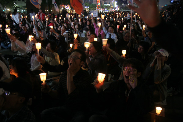 第240号 2008年05月05日 2日、米国牛肉輸入反対大規模キャンドル集会