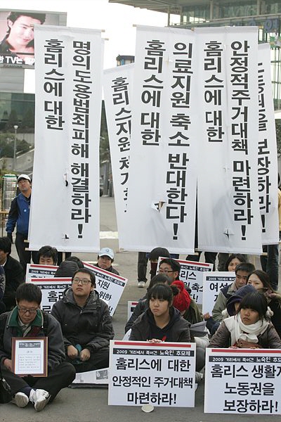 6大要求争取決意大会」を開いた。彼らは決意大会が終わってから、市庁まで行進した。また夕方 7時から「2009 街で死んだ路宿人のための追慕祭(Homeless