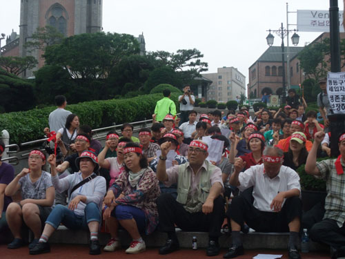 一方明洞再開発反対闘争をおいて、宗教界を含めた労動、政党、市民社会団体などが続々と結合をしている状況である。