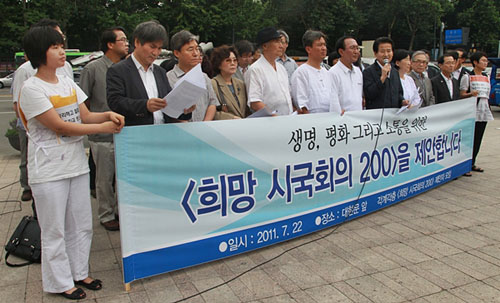 時局会議の参加者達は「7月 24日、生命、平和、そして疎通のための『希望時局会議200』は、今の時代の良心が一緒に集まって道を提案する連帯の場になるはずであり,