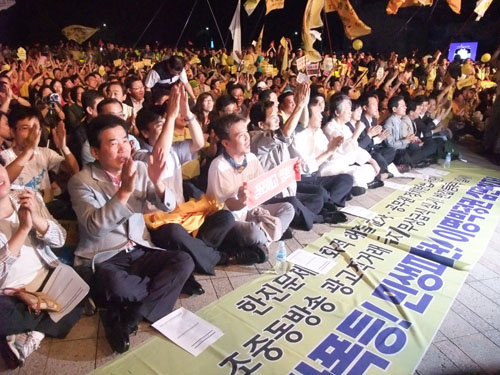 約1万名の参加者が押し掛け、午後10時からソウル市庁広場で希望時局大会が開催された。
