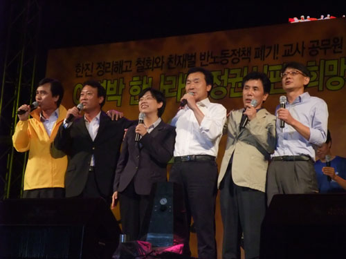 野6党の代表の発言も続いた。教師、公務員の政治弾圧に関して、民主労働党の李正姫(イ・ジョンヒ)代表は「今回の教師、公務員政治弾圧は、単一の事件で
