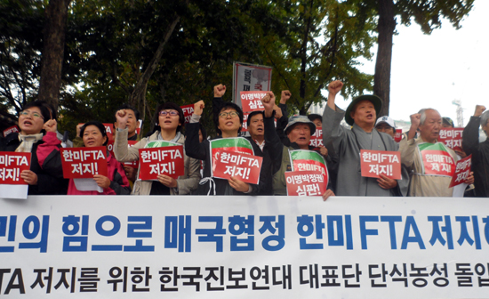 農民団体、米韓FTA 批准阻止のための断食突入